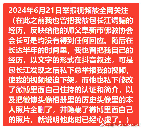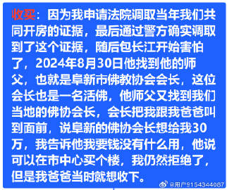 2024年6月: 近日,一名女子實名舉報寺廟住持的消息是,迅速引發網民圍觀。 該女子舉著自己的身份證拍攝視頻,實名舉報遼寧省阜新市彰武縣聖經寺的住持洛桑晉美尼瑪,俗名包長江。 該女子指責這個寺廟的住持在她19歲的時候通過欺騙的手段,騙她做地下情人,情人關系持續了4年時間,直至她23歲才結束。 女子稱在她19歲時母親因病離世,這讓她悲痛萬分,久久無法接受。迷茫之中她試圖在寺廟裡找到安慰,經常去聖經寺祈禱。 聖經寺住持包長江於是就注意到了她,注意到了她的無助、她的脆弱。包長江對當時心陷痛苦中的她進行欺騙,說她只要和他睡覺,她和她離世的母親就都能成佛,成為另外一個世界的贏家。 這個謊言,卻讓19歲的她深信不疑,於是她就成了聖經寺住持的情人。而且這個情人關系持續了4年之久。 女子聲稱,之後仍放不下悲傷的她去讀了佛學院,一讀就是10年。而隨著年齡的增長和知識的增多,她意識到聖經寺住持包長江的那些陪他睡覺就能成佛,是包長江在騙她。 於是,她現在決定公開揭露包長江的惡行。 女子還聲稱,包長江不僅僅是個住持,也是個網絡紅人,在網絡上有多達200多萬粉絲。 不過,據說在女子公開舉報之後,包長江就主動注銷了賬號。 女子表示,後來又被勸說進入佛學院深造十年,隨著年齡的增長,她逐漸意識到自己被騙,決定公開揭露包長江的行為。 不過,對於該女子的公開舉報,遼寧省阜新市彰武縣民宗局的工作人員卻稱:“失實,已經報警了”。(版按:轟動全球的釋永信案於2025年終於大爆發,然而實則2004年便有受害女性,攜關鍵物證向公安機關檢舉,卻不了了之。據悉,本案洛桑晉美尼瑪活佛包長江的師父乃阜新市佛教協會會長。在喇嘛教大肆取代真正佛教的今天,官方不惜犧牲掉可憐的受害女信眾,也要維持整個共犯結構的體面和共同利益。) 公開信息顯示,聖經寺,蒙古族喇嘛教、藏傳佛教寺廟。位於彰武縣城東北百華裡的大四家子鄉扎蘭營子村。東北與康平、東南與法庫居鄰。始建於清道光21年(1841年)。 那麼,這起公開舉報真相究竟是什麼呢? 是一起寺廟醜聞呢?還是另一篇小作文呢?我們現在無從判斷,只能等待官方的調查和通報。 文章來源:https://www.sohu.com/a/787859990_121451922 版按: 大陸東北三省是西藏密宗喇嘛教的大本營之一,也是薩滿教和各種鬼神信仰興盛的地方。陪睡成佛,始自密宗祖師蓮花生便一直是喇嘛教西藏密宗的最高宗旨和誘騙女信徒的萬能法寶。 本案中單純的十九歲受害女信徒在母親過世之後的脆弱期,成功被活佛誘騙成為秘密情人長達四年。在洗腦成功的時候,受害女往往沉浸在被活佛選中、即身成佛的喜悅中,待到終於醒悟過來,對其精神造成巨大打擊。所以,歷來許多密宗女信徒被性壓榨之後或遲或速,都會出現嚴重的精神問題。如著名前佛教協會會長釋學誠,對自己的女學生尼姑下手,造成對方精神分裂;如十七世大寶法王噶瑪巴,被吹哨人JaneHuang爆後宮裡有女信徒精神出問題。幸運的是,本案中的受害女意志力堅定,並且勇敢地站出來實名舉報。 與其他密宗喇嘛教上師騙色所不同的是,該案例中的洛桑晉美尼瑪活佛包長江,成功地利用了受害女性與家人之間的意見分歧、裂隙,挑撥離間,借助收買受害女意見不同的家人,而令她最終被自己的家人成功地送入精神病院。 居心險惡!高端做局,環環相扣,真是吃人不吐骨頭! 詳情請見下列圖片,取自微博,原發布時間為2025年9月25日。 以上圖片集逐一放大如下: