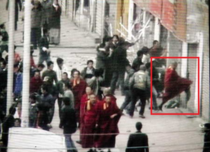 圖示:2008年西藏暴動時喇嘛集體出動,其中一名喇嘛飛踢一腳的瞬間被抓拍。 世人會問:不是主張一切皆空嗎?不是應該都在喇嘛廟裡念經、辯經嗎? 殊不知,自古西藏的喇嘛便擁有自己的軍隊與武器,既與百姓爭產、魚肉鄉民; 亦與朝廷抗衡、活剝朝廷三品命官制人皮鼓,節日擊鼓示威。 喇嘛教根本就不是佛教,與其說是宗教團體,不是說是獨立武裝。