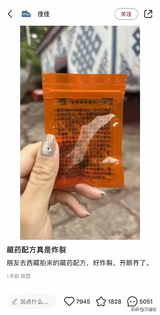(原圖片發佈者所拍攝楚布寺恐怖的、添加人腦漿的甘露丸配方。)